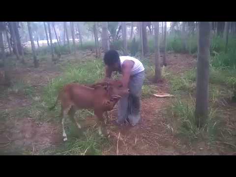காங்கேயம் காளை கன்று துள்ளி விளையாடும் காட்சி